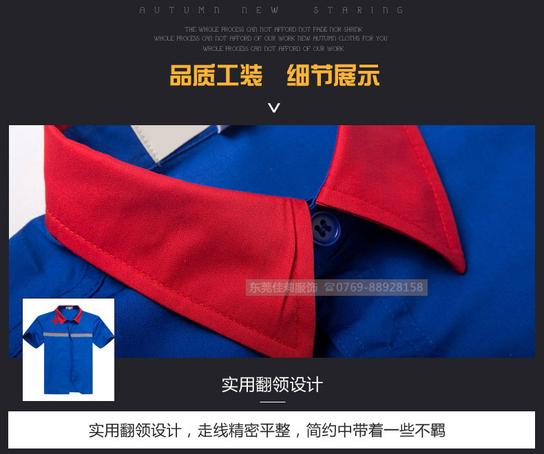 高品質(zhì)全新形象,經(jīng)典設(shè)計(jì),立體裁剪,時(shí)尚翻領(lǐng),質(zhì)感有型。走線細(xì)致,優(yōu)質(zhì)暗扣,實(shí)用性強(qiáng)。胸前口袋撞色拼接,雙明線縫制既時(shí)尚又耐用,即使在下班之余也可以穿。